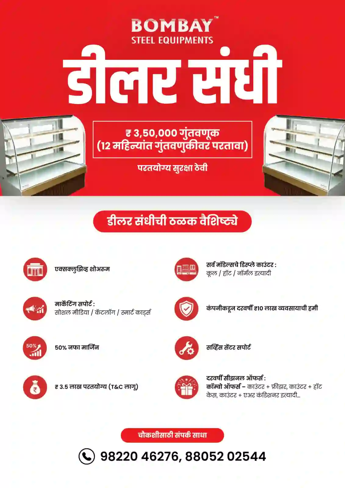 Bombay Steel Equipment wide range of bakery display counters, including dry cake counters, pastry display counters, and customized bakery counters to suit different shop layouts and requirements. These counters are designed to maintain freshness, provide clear visibility of products, and support efficient service at the point of sale.